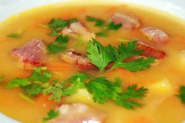 Ингредиенты для приготовления Гороховый суп на копченых ребрышках с беконом: