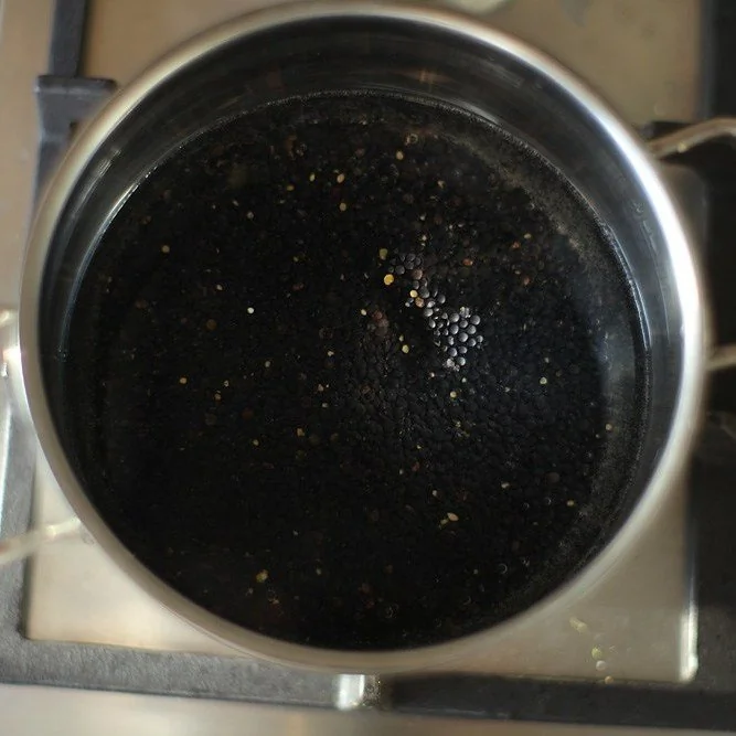 ШАГ 4 В это время в маленькую кастрюльку положите чечевицу, залейте водой, доведите до кипения, посолите и варите еще 15 минут. Слейте воду.