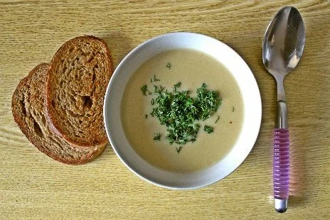 ШАГ 8 Подавайте горячим, украсив петрушкой или укропчиком. Будет еще вкуснее, если подать суп со слегка поджаренным белым или серым хлебом, смазанным чесноком.