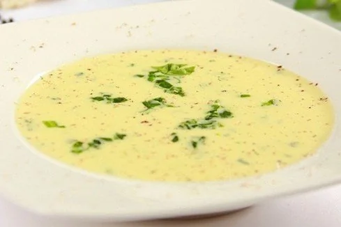 ШАГ 3 Взбить в миске сливки, желтки и лимонный сок. Влить в суп 1 столовую ложку получившейся массы, перемешать. Затем добавить оставшуюся заправку и еще раз перемешать. Варить 7 минут. В готовую лапшу положить измельченную кинзу. Разлить по тарелкам.