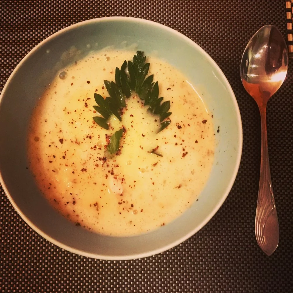 Тыквенный крем-суп с курицей и сухарикамии