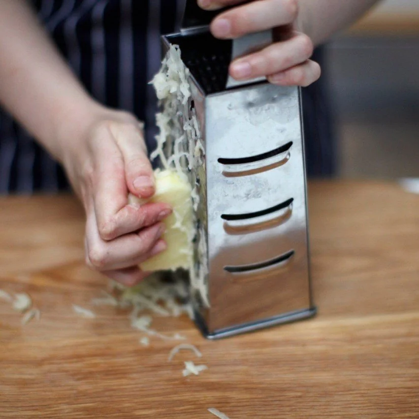 ШАГ 3 Картофель очистите натрите на крупной терке.