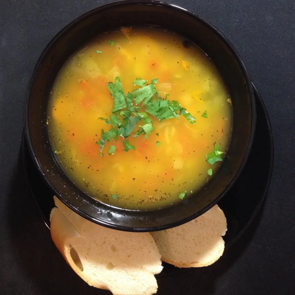 ШАГ 7 Добавьте в бульон поджаренную с чесноком муку. Доведите суп до кипения.