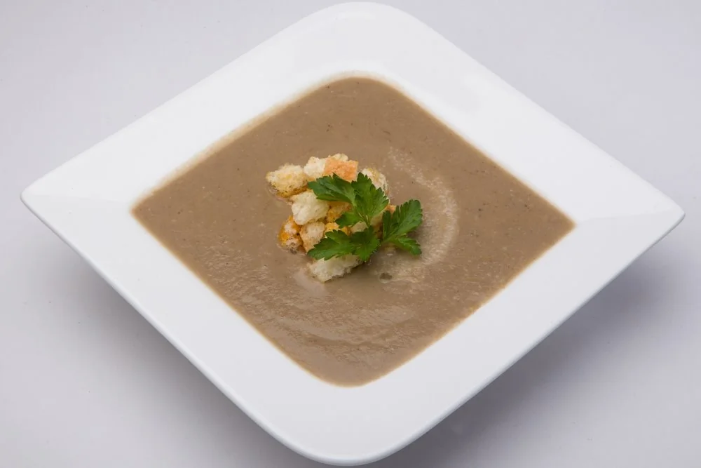 Крем-суп из шампиньонов со сливками и чесночными сухариками