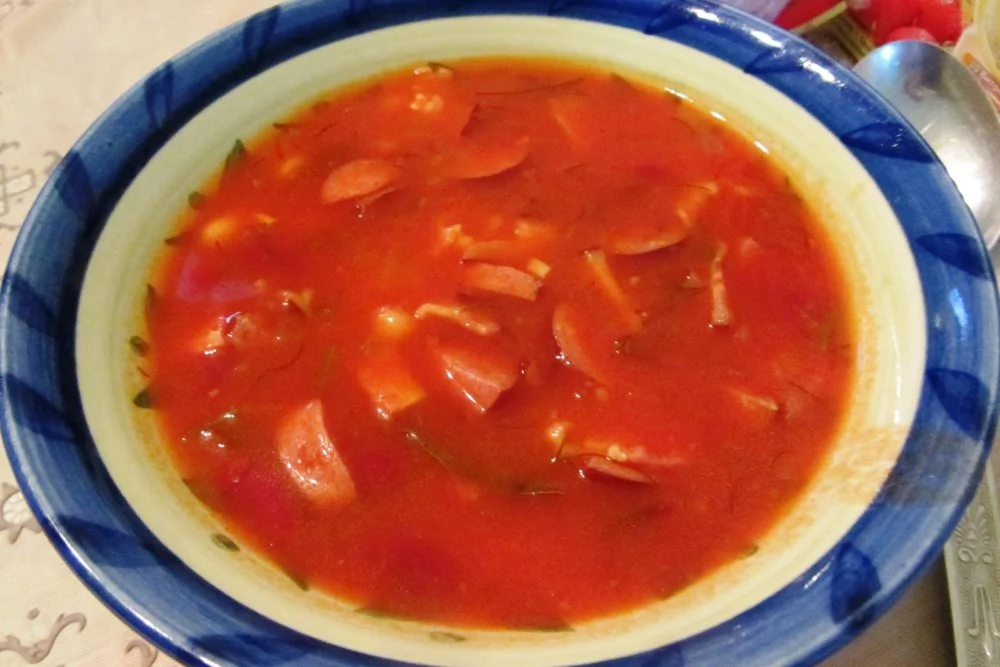 Ингредиенты для приготовления Томатный суп с охотничьими колбасками:
