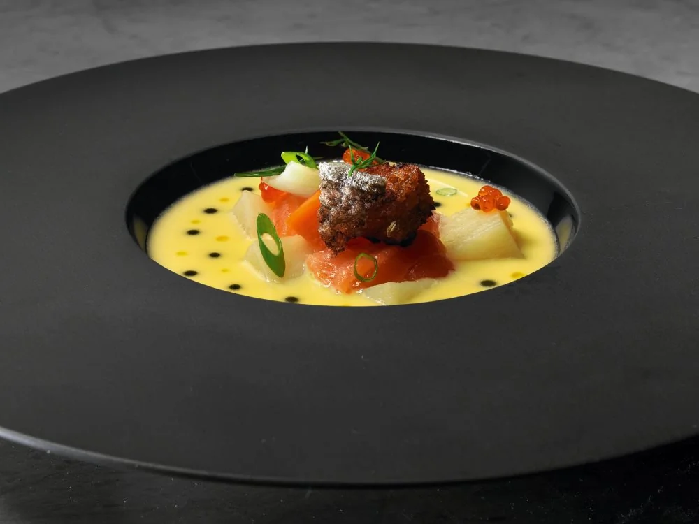 Кости лосося Филе лосося Молоко 3 2%-ное Сливки 35%-ные Укроп Перец чили Черный хлеб Лавровый лист Картофель Морковь Лук репчатый Лимонное масло Укропное масло Соль Супы Японская кухня