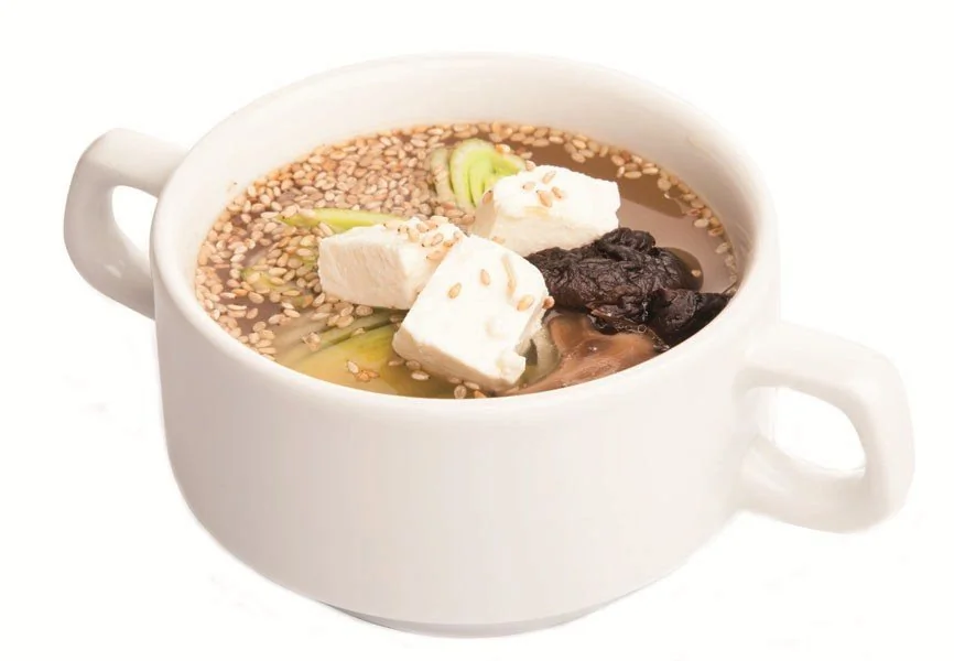 ШАГ 3 В отдельную миску отлить часть бульона, развести в нем мисо-пасты, получившуюся смесь влить в суп.