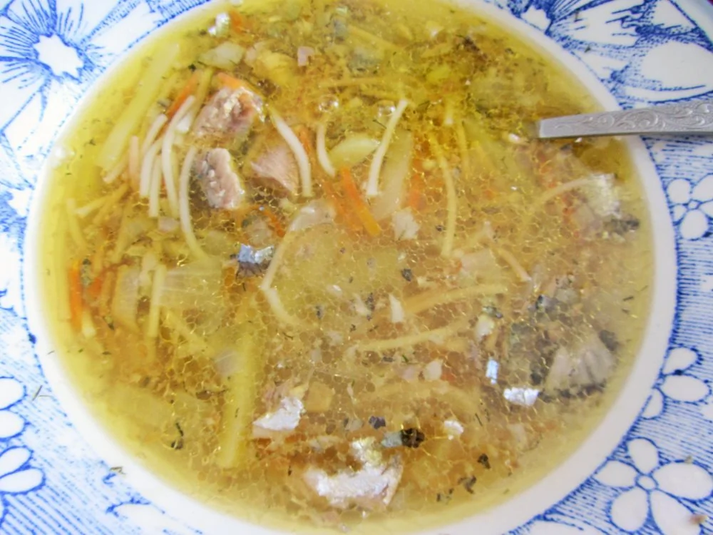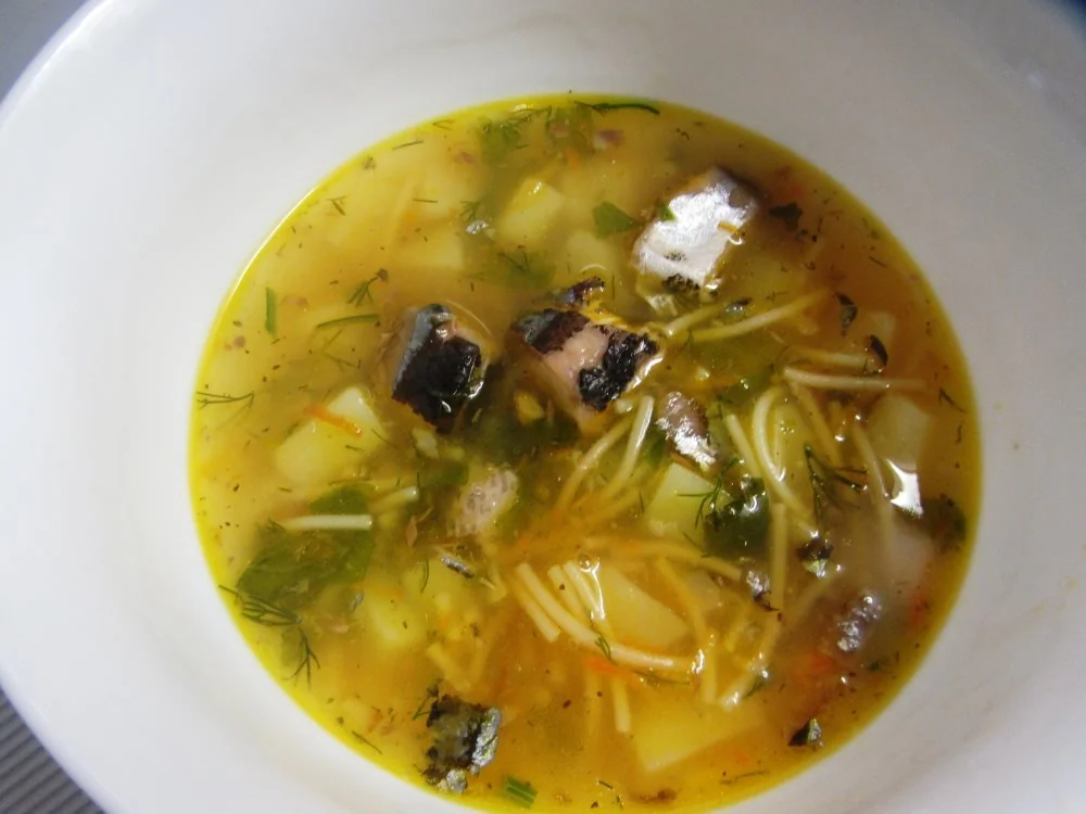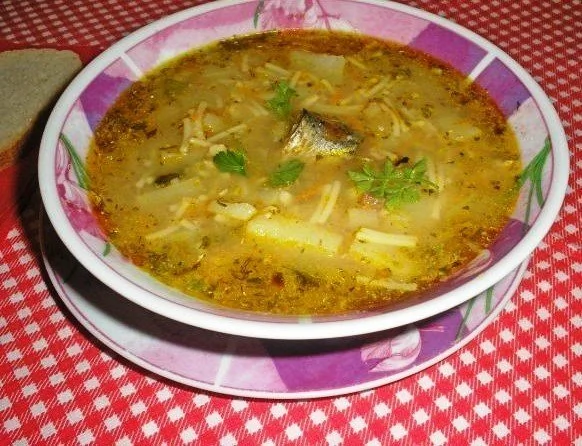 Ингредиенты для приготовления Суп из рыбных консервов с вермишелью: