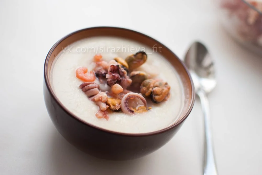Ингредиенты для приготовления Крем-суп из цветной капусты с морепродуктами: