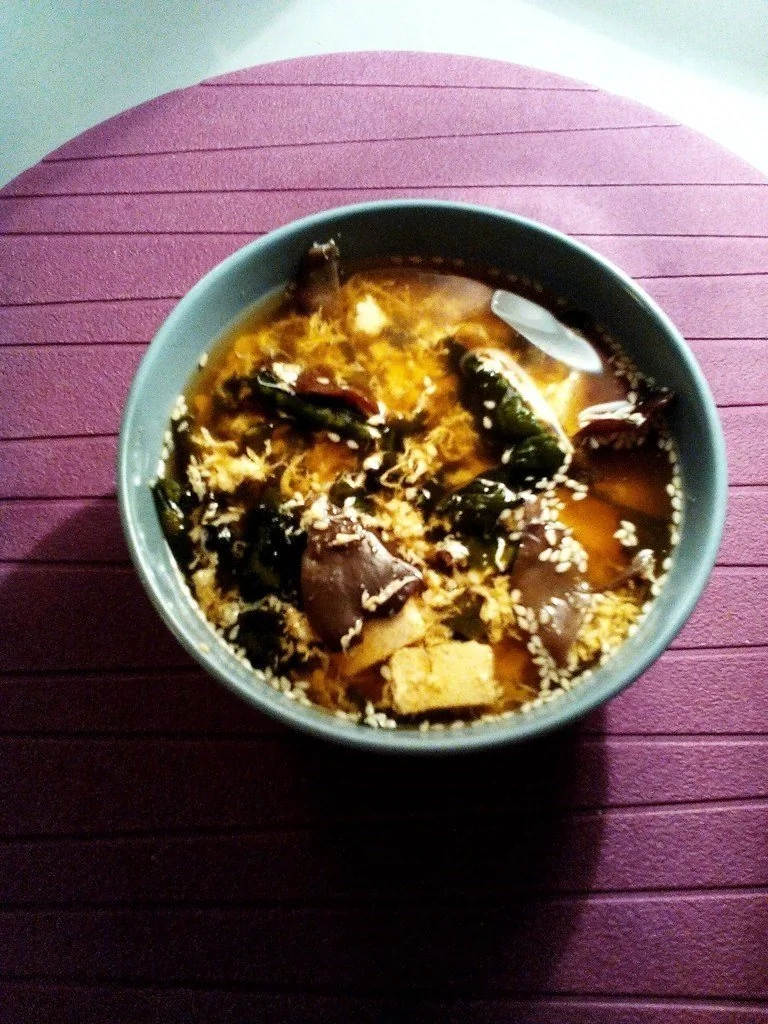 Суп кимчи с яйцом, тофу и древесными грибами моэр