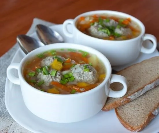 Ингредиенты для приготовления Суп с фрикадельками в микроволновой печи: