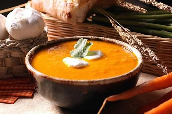 ШАГ 3 Взбить суп в блендере, добавить нарезанную свежую мяту. Суп можно подавать как горячим, так и холодным. Перед подачей на стол добавить ложку сметаны и свежую мяту.