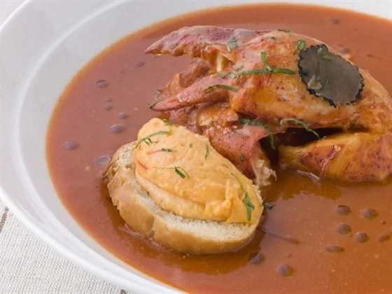 Омары Чеснок Морковь Зеленый лук Стебель сельдерея Цукини Помидоры Пшеничная мука Сливочное масло Петрушка Рыбный бульон Укроп Оливковое масло Коньяк Белое сухое вино Лед Супы Итальянская кухня
