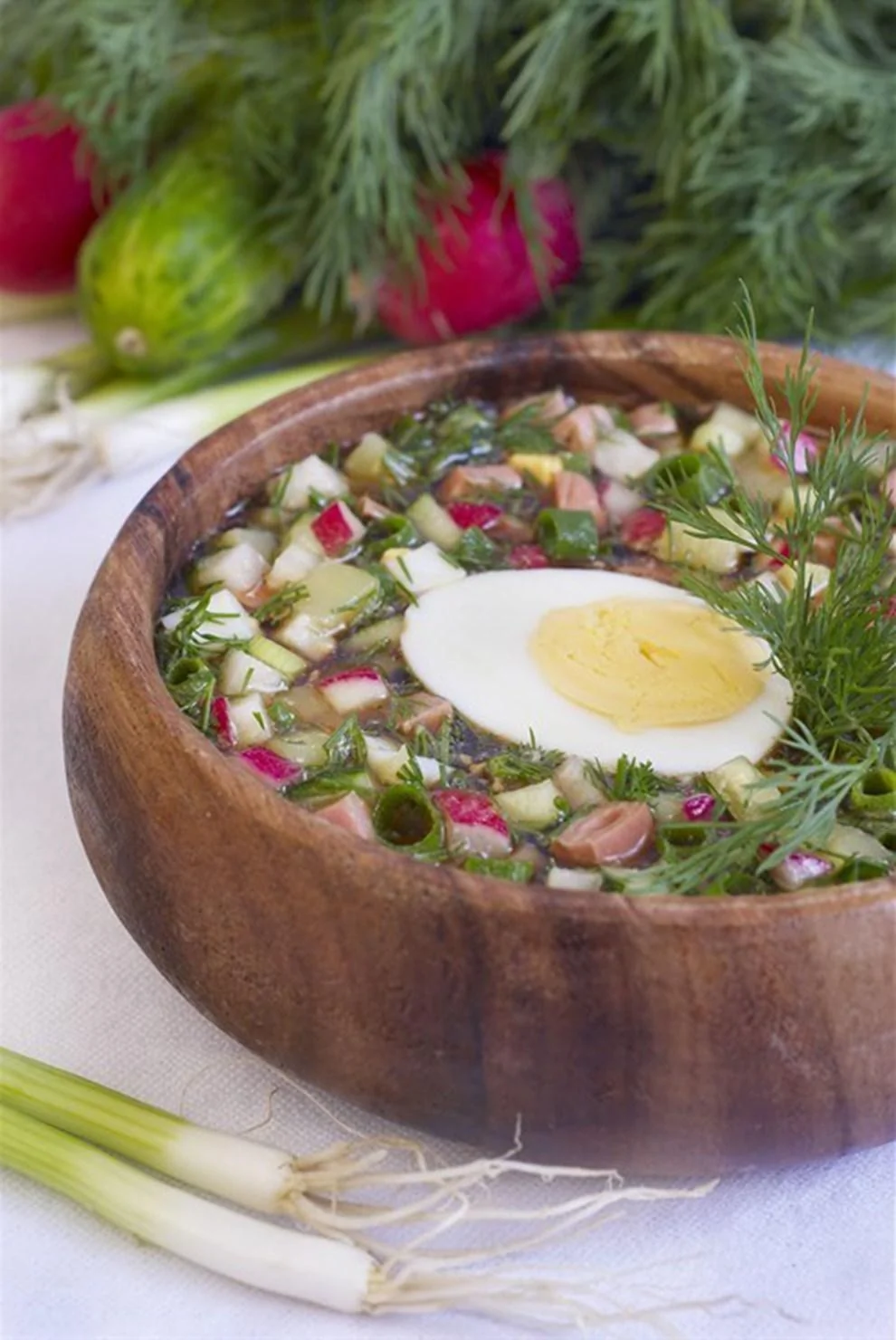 Редис Зеленый лук Огурцы Вареная колбаса Картофель Яйцо куриное Пиво Соль Супы Русская кухня Окрошка
