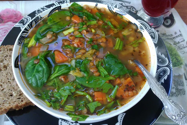 Суп из зелёной чечевицы со шпинатом вегетаринаский