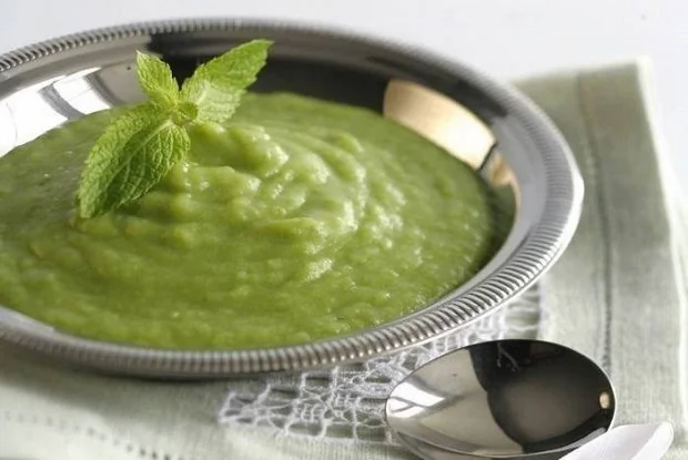 Суп-пюре с зеленым горошком, мятой и луком-пореем