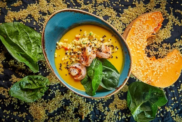 Ингредиенты для приготовления Тыквенный суп с креветками и булгуром: