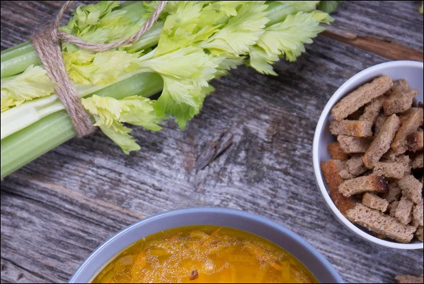 Домашний куриный суп с вермишелью и сельдереем