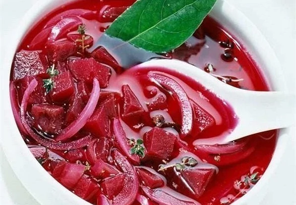 ШАГ 3 Когда картошка поварится 10-15 минут добавляем к ней свеклу со всем ее маринадом.
