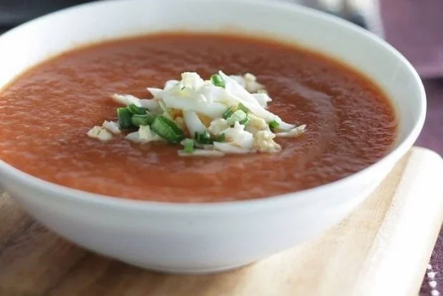 Холодный суп с помидорами, болгарским перцем и перцем чили