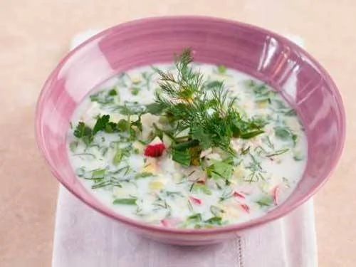 Ингредиенты для приготовления Холодный суп из простокваши с зеленью и ветчиной: