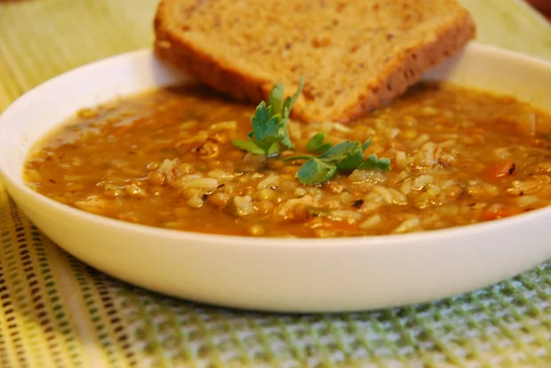 ШАГ 3 Затем выложить пережарку в похлебку и посыпать мелко нарезанной зеленью.