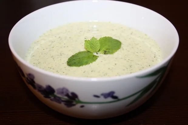 ШАГ 2 Яйца, мяту и 1 ложку муки измельчить в блендере. Далее добавить йогурт и взбить.