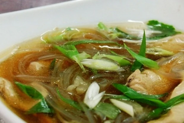 ШАГ 13 Подавать суп с соевым соусом, присыпав кинзой, соевыми ростками, зеленым луком и чили.