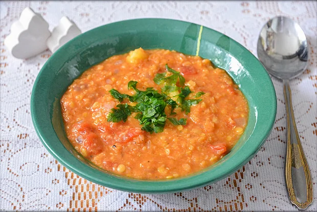 Чечевичный суп с помидорами