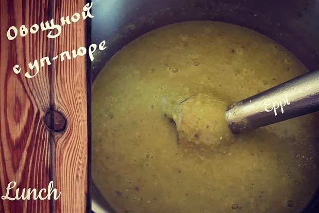 ШАГ 4 Потом выключить огонь и с помощью блендера измельчить.