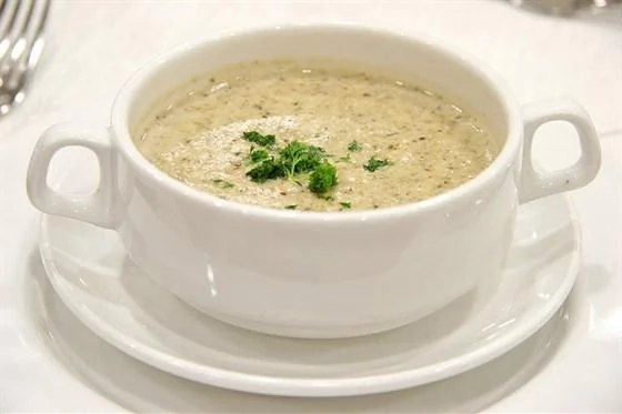 ШАГ 6 Налейте небольшое количество смеси в центр супа и сверху положите немного сухих грибов.