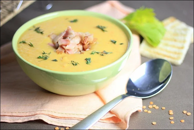 Ингредиенты для приготовления Суп-пюре из чечевицы с беконом: