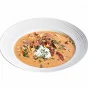 ШАГ 3 Бекон, нарезанный кубиками обжарить на небольшом огне, добавить измельченный лук, обжарить его до прозрачности, добавить измельченный чеснок, зиру, паприку и пасту из паприки. Добавить муку, хорошо перемешать и добавить овощную смесь в бульон.