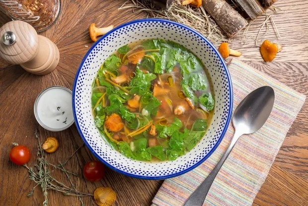 Ингредиенты для приготовления Вегетарианский суп с лисичками и шпинатом: