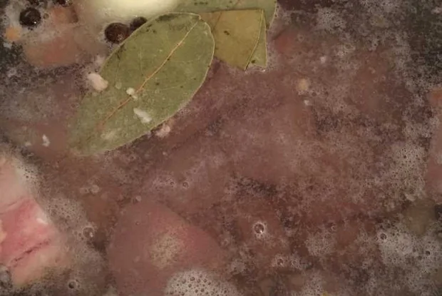 ШАГ 3 Положить целую очищенную луковицу, перец горошком и лавровый лист по вкусу.