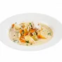 ШАГ 3 Добавить крупнонарезанные порей, морковь и сельдерей, тимьян и лавровый лист, накрыть крышкой и варить еще 30 минут.