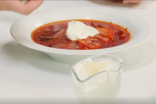 ШАГ 13 Разлить борщ по тарелкам, посыпать зеленью, при желании добавить сметану. Естественно, на второй день борщ станет еще вкуснее.