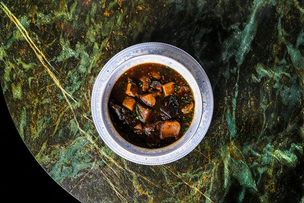 ШАГ 1 Сварить бульон из 250 грамм белых грибов, 350 грамм моркови, 350 грамм репчатого лука, 35 грамм чеснока и 17 грамм черного перца горошком. Сложить все ингредиенты в кастрюлю, залить их 10 литрами воды, довести до кипения. Снять. Оставить на небольшой температуре на 3–4 часа. Процедить.