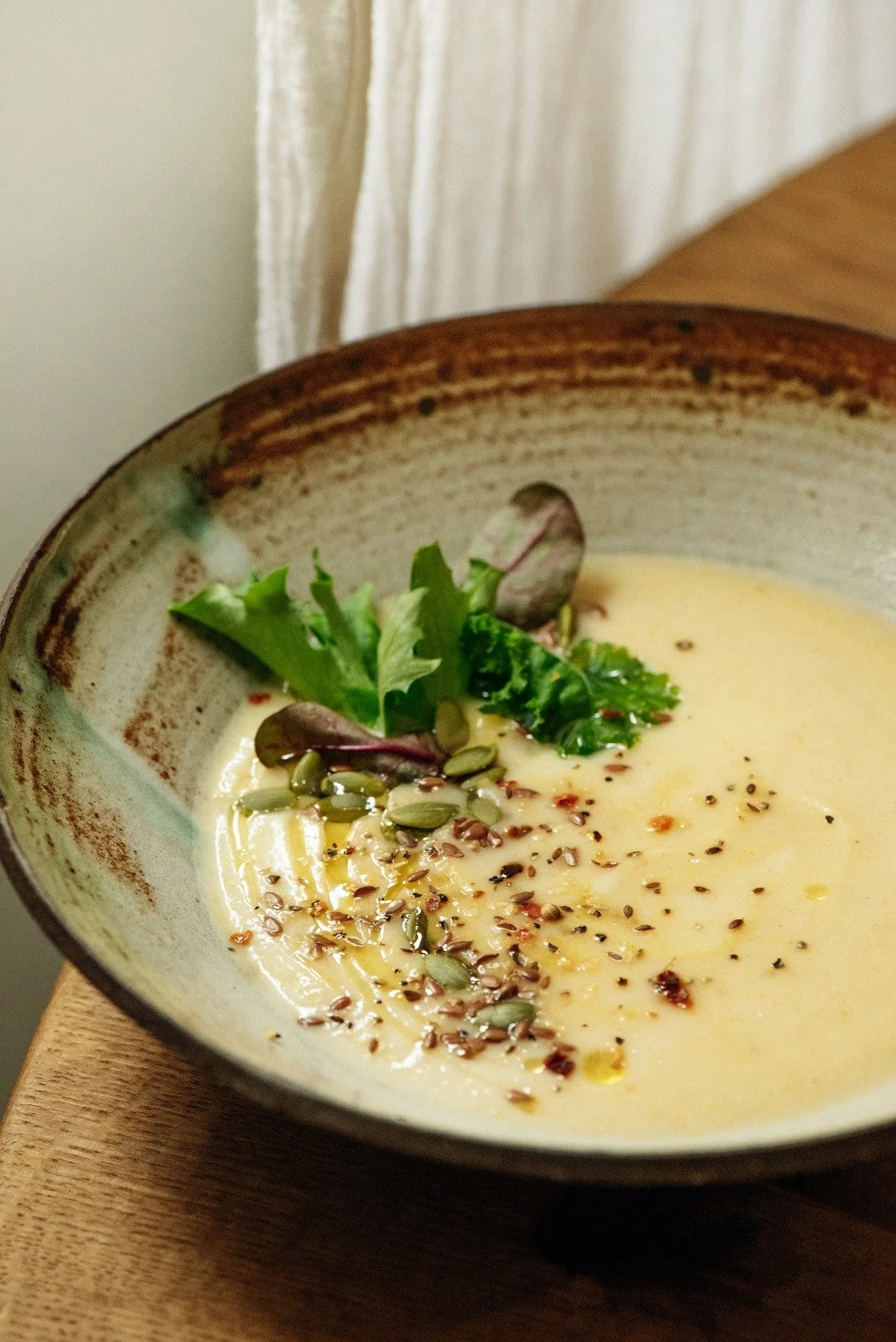 ШАГ 3 Затем пробить суп в блендере. Если суп кажется слишком густым, добавить еще теплых сливок. Консистенция супа шелковистая, однородная. Вкус сбалансированный и легкий.