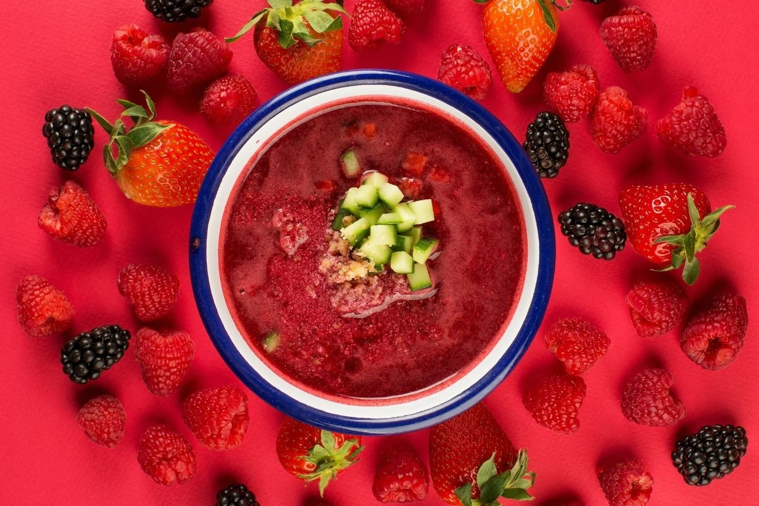 ШАГ 3 Для подачи: огурец нарезать мелким кубиком, орех грецкий покрошить. Суп налить в тарелку и украсить огурцом и молотым грецким орехом.