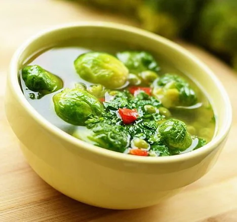 ШАГ 4 Добавить в суп брюссельскую капусту, болгарский перец, кинзу и сок лайма.
