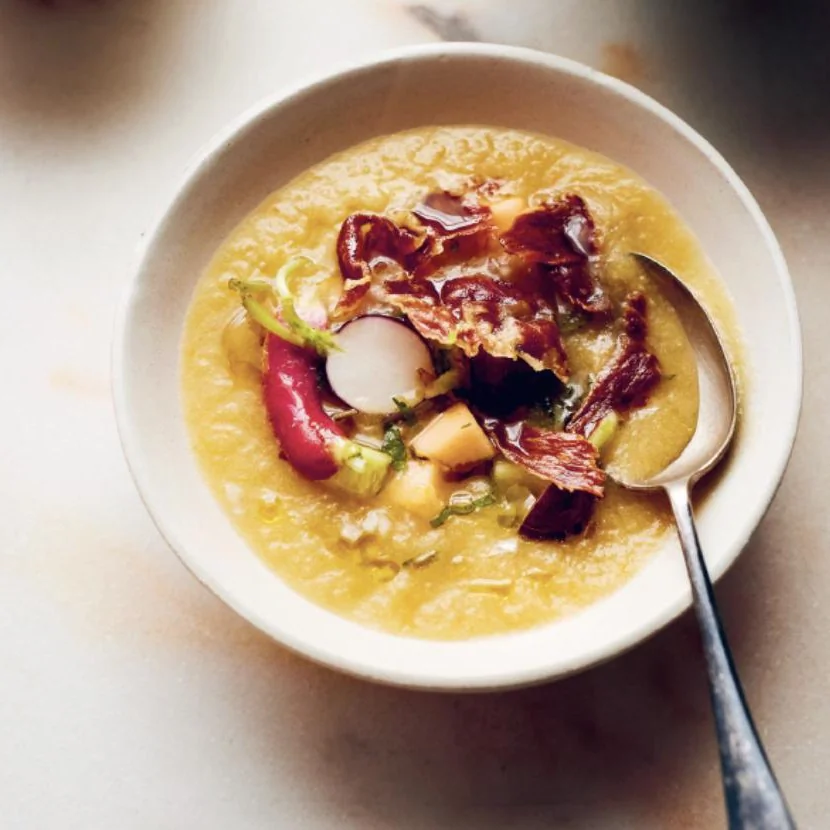 Ингредиенты для приготовления Гаспачо из дыни и огурца: