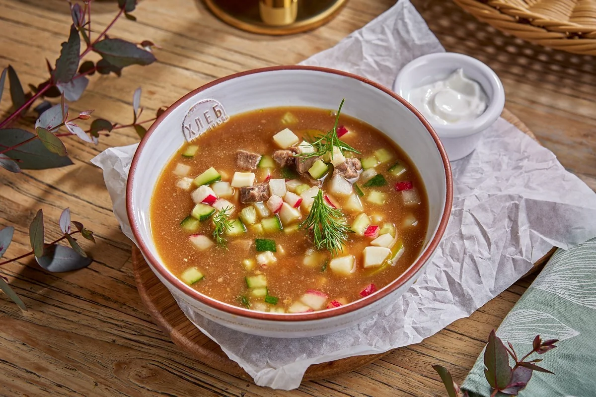 Ингредиенты для приготовления Окрошка на квасе с говядиной: