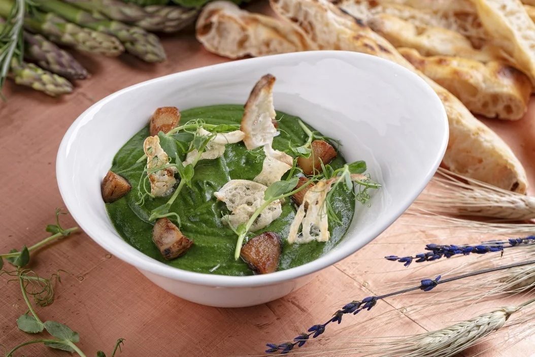 Крем-суп из шпината с белыми грибами