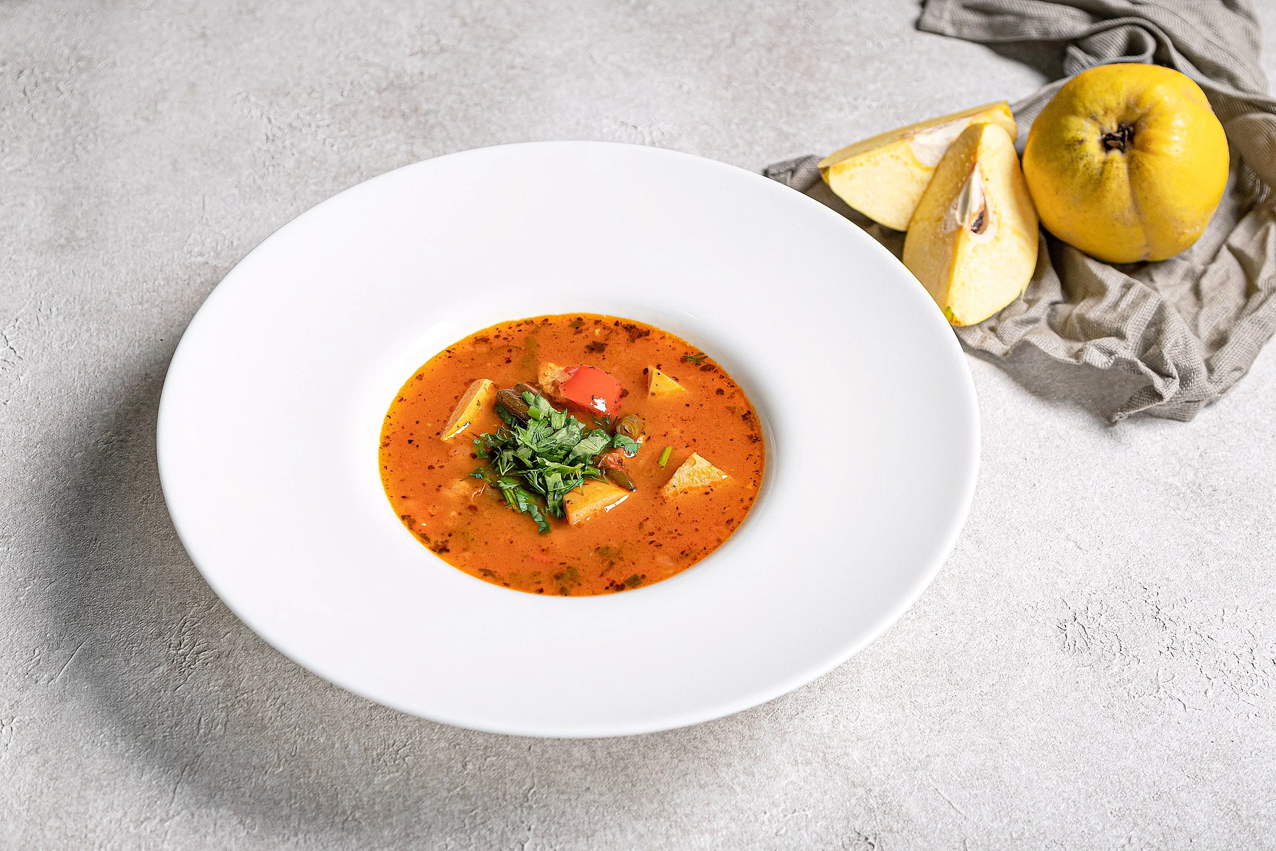 Наваристый суп из айвы с нутом и бамией