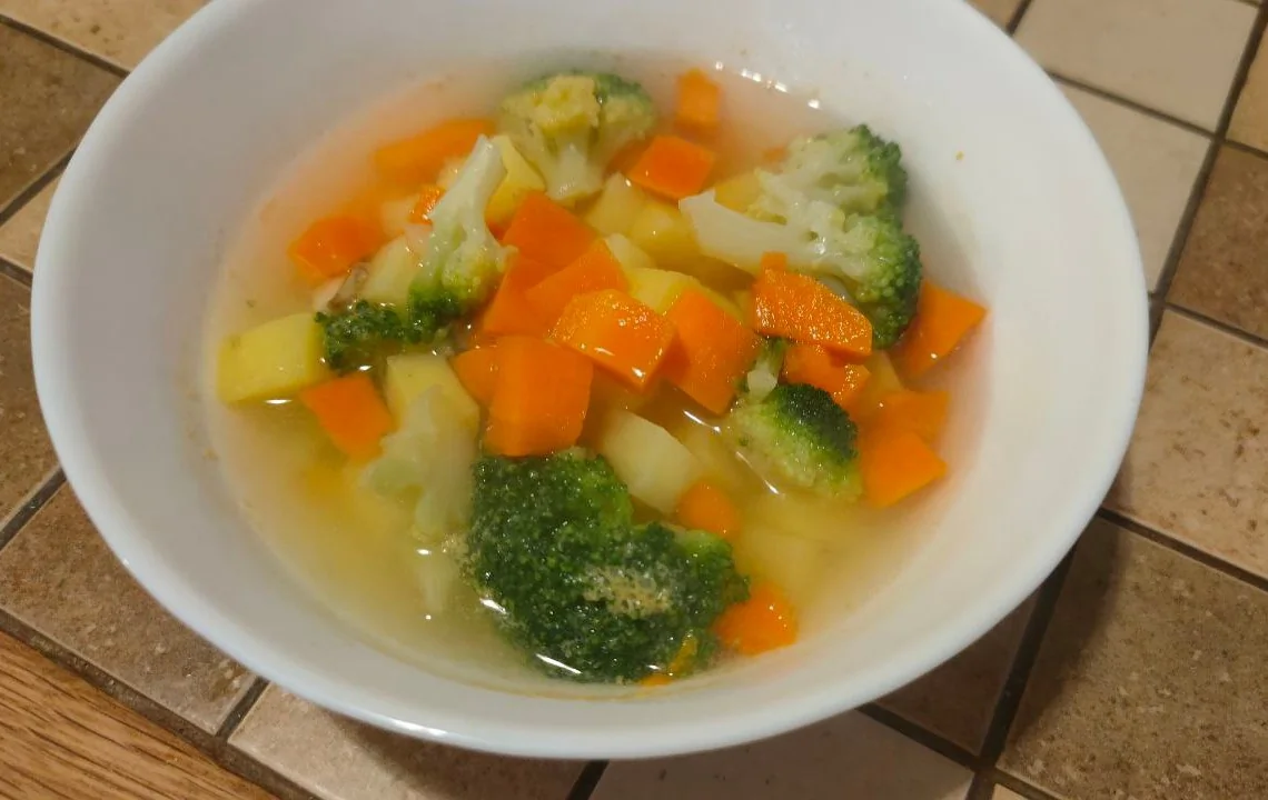 ШАГ 7 Морковь нарезать кубиками и также добавить в бульон.