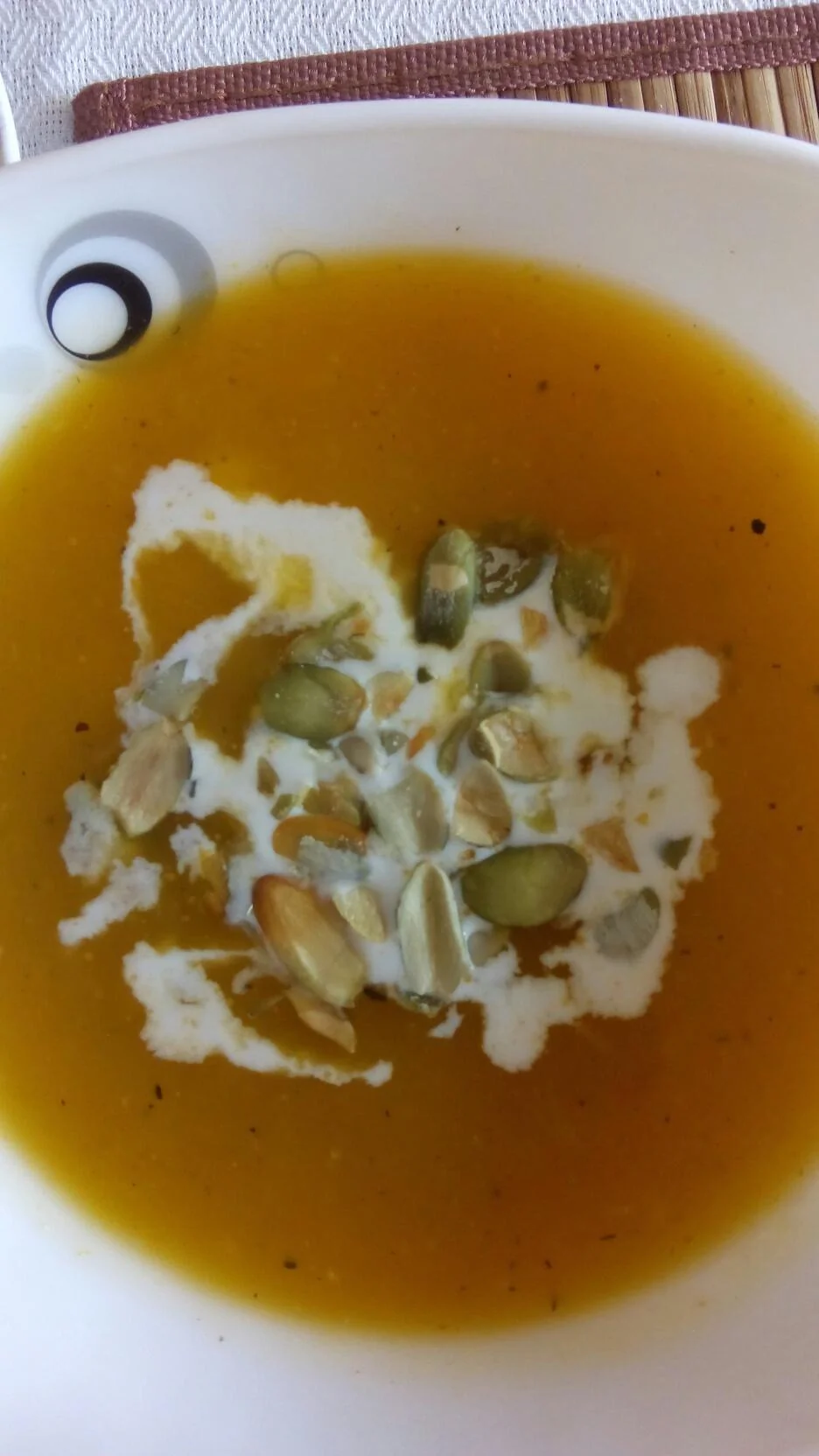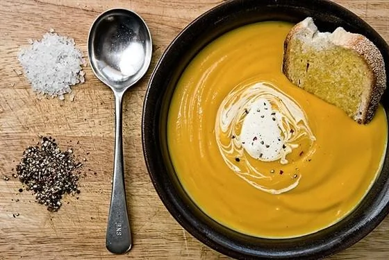 ШАГ 3 Перелейте суп в 4 небольшие миски и положите немного сливок сверху в виде спирали. Подавайте с теплым хлебом.