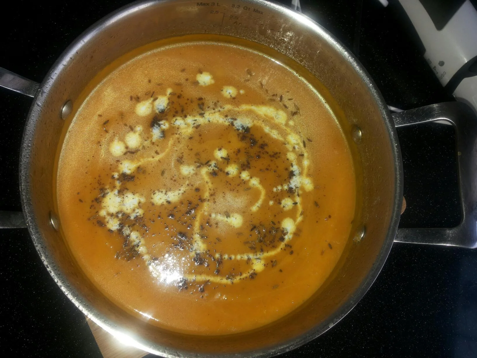 ШАГ 1 В большую кастрюлю налейте бульон и 500 мл воды, доведите до кипения и добавьте нарезанную на небольшие кусочки тыкву, мелко нарезанные лук и чеснок, снова доведите до кипения. Уменьшите огонь и варите 15 минут до мягкости тыквы.