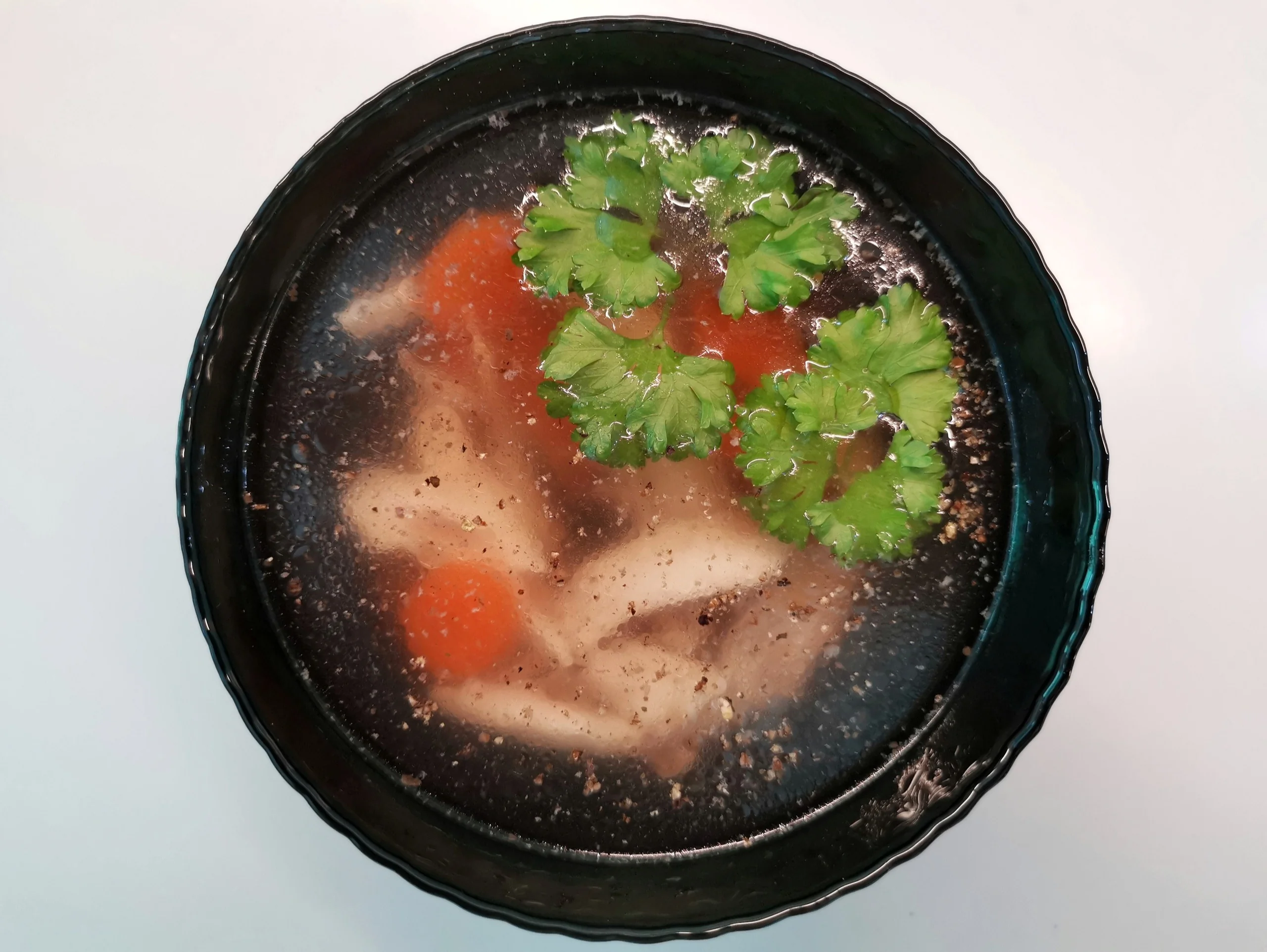 ШАГ 9 Когда суп будет готов, курицу разделать на волокна.