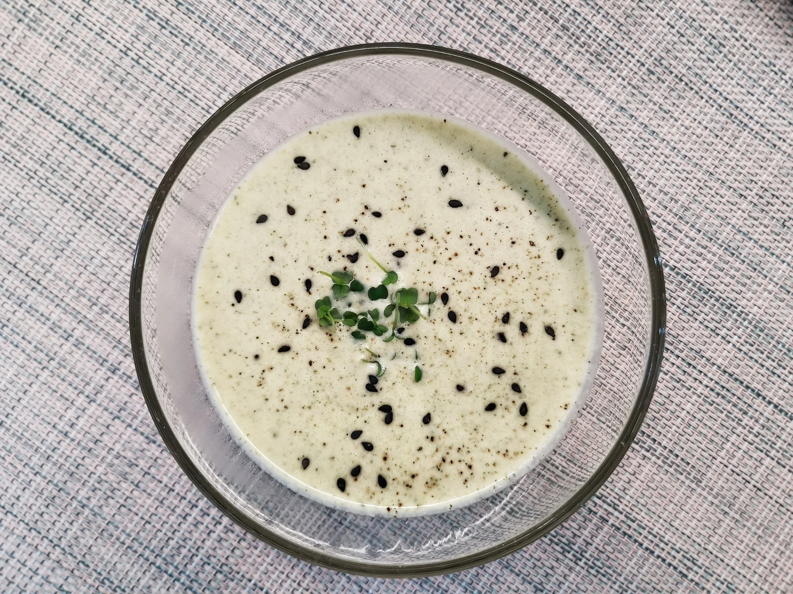 ШАГ 11 Интенсивно взбить блендером и посолить, добавив оставшиеся сливки.